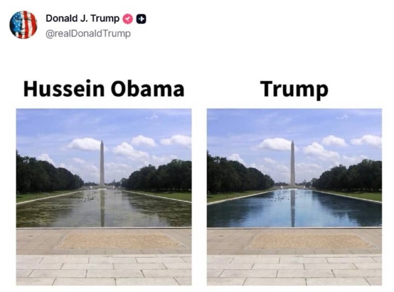 🇺🇸 Trump decided to demonstrate the advantages of his administration in an unusual way For this, he posted photos of a pond taken during Obama’s presidency and at the present time on social media. @Intelslava View Source