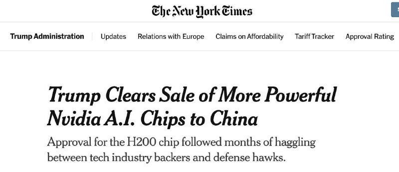 🇺🇸🇨🇳 Trump unfreezes supplies of advanced processors for artificial intelligence to China.