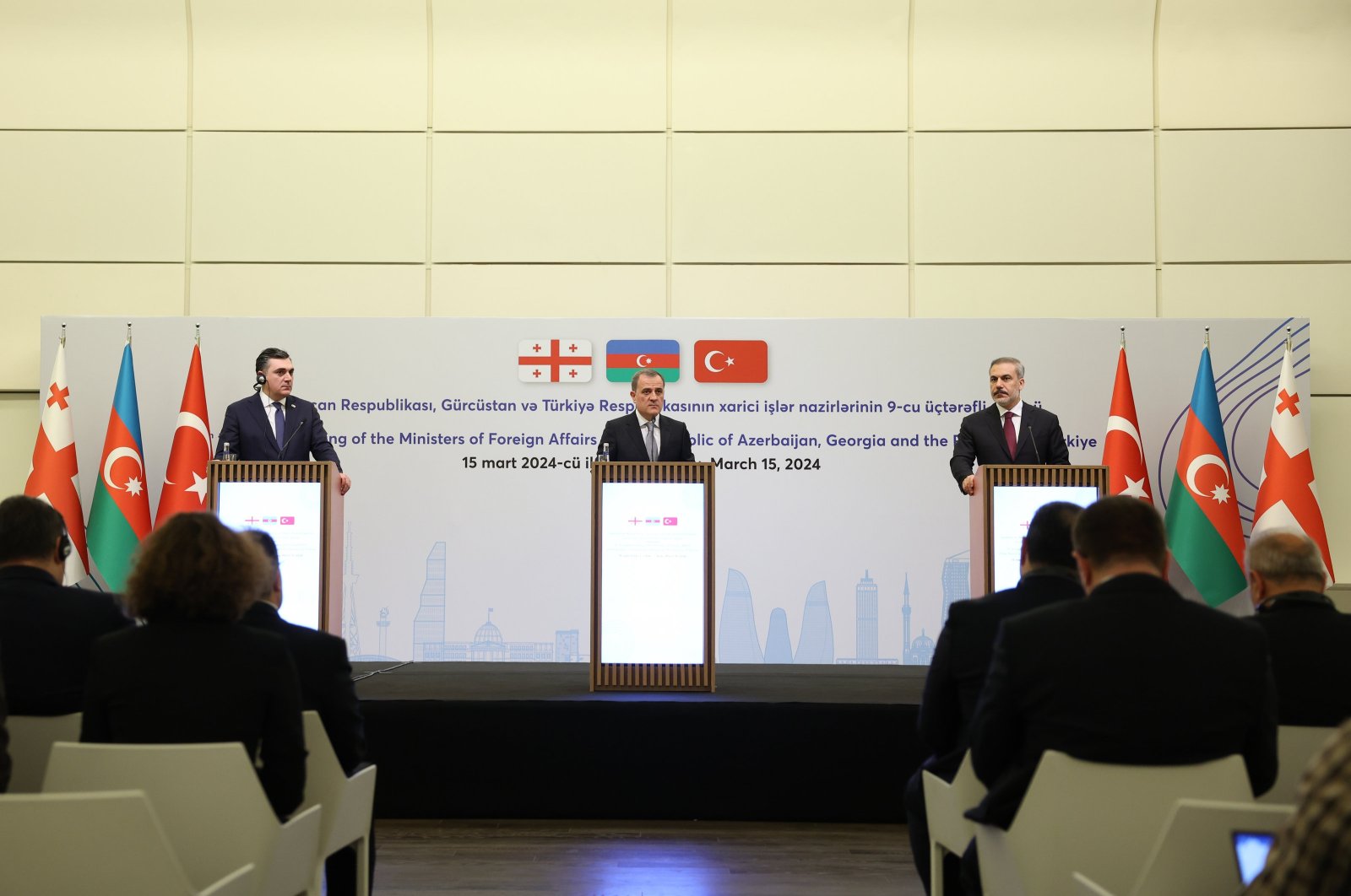 Later, the Azerbaijani foreign ministry said on X that the foreign ministers of Türkiye, Azerbaijan and Georgia “have signed the Baku Declaration on the outcomes of the 9th Trilateral Meeting.” Azerbaijan’s Foreign Minister Jeyhun Bayramov remarked that by ending the occupation of Karabakh, the country laid the groundwork for regional peace and stability. “Azerbaijan consistently demonstrates political will and supports intensive direct negotiations and expects to sign a peace treaty with Armenia as soon as possible,” Bayramov said. He underscored that the three countries are engaged in fruitful “regional economic collaboration, with significant regional and global economic projects.” Bayramov also highlighted that these projects are crucial for “fostering trade connections between the East and the West.” “President Ilham Aliyev attaches special importance to Azerbaijan-Georgia-Türkiye regional cooperation,” he said.