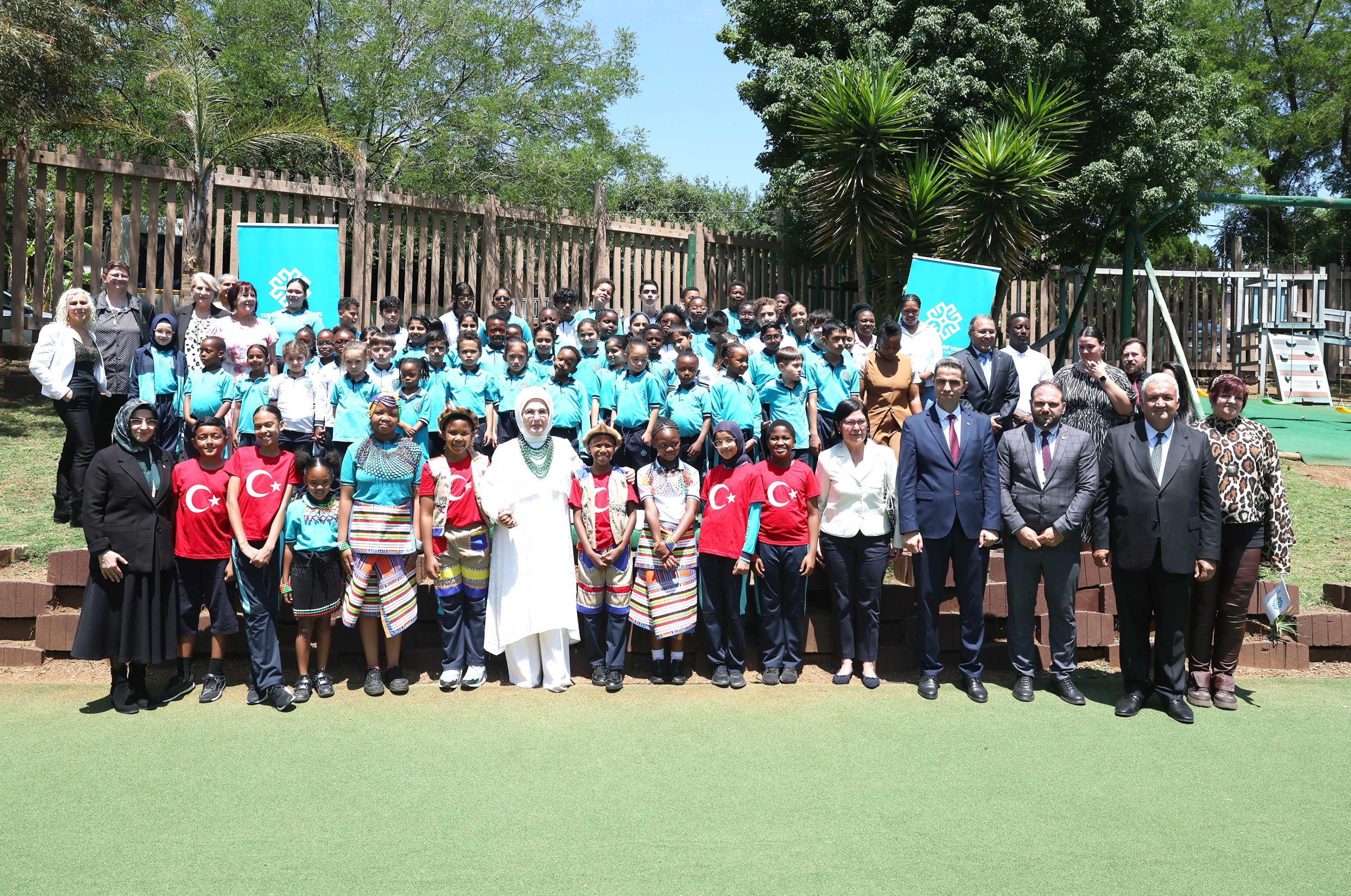 Emine Erdoğan visits the International Maarif School in South Africa, Nov. 22, 2025. (DHA Photo)