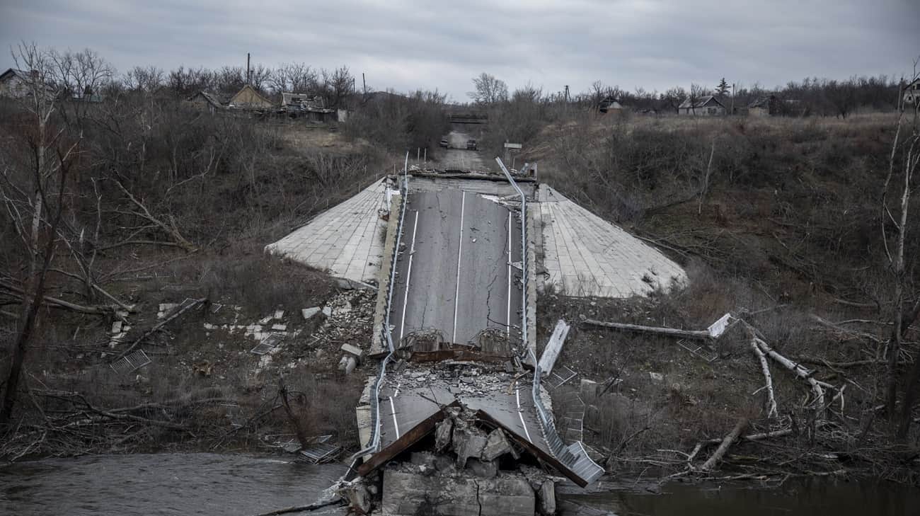 A destroyed bridge is seen in the Bakhmut region amid Russia-Ukraine war in Siversk, Ukraine on March 03, 2023. Stock photo: Getty Images