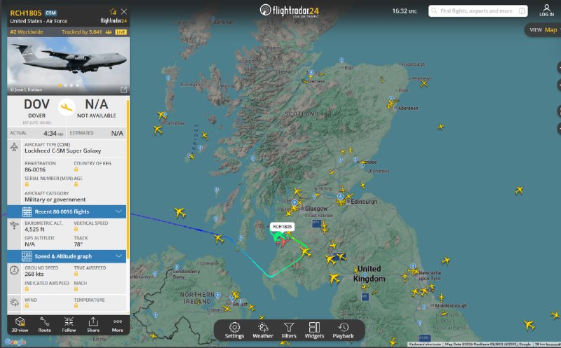 🇺🇸🏴🇬🇧🗺 — United States Air Force Lockheed C-5M Super Galaxy spotted over Scotland, United Kingdom after crossing the Transatlantic Air Bridge from United States View Source