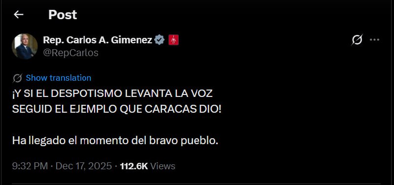 🇺🇸❌🇻🇪🇨🇺 — US Congressman Carlos A. Gimenez on X: AND IF DESPOTISM RAISES ITS VOICEFOLLOW THE EXAMPLE THAT CARACAS GAVE! The moment of the brave people has arrived. View Source
