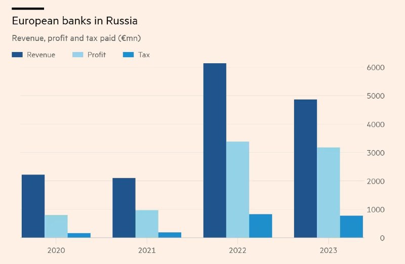 🇪🇺🇷🇺 Western banks paid 800 million euros in taxes in Russia for 2023 – this is four times more than in pre-war 2021.