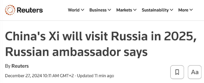 🇨🇳🇷🇺Xi Jinping will visit Russia next year, the Russian ambassador to China said.